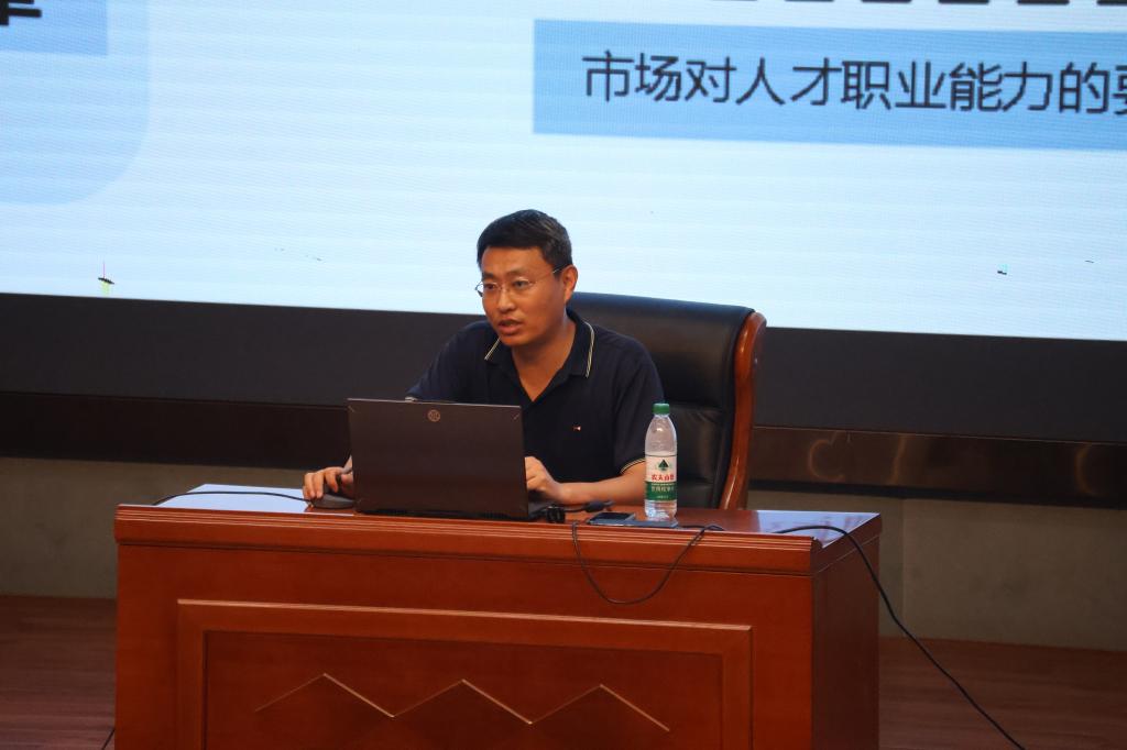 数字媒体技术系副主任徐敏峰为新生阐释了数字媒体技术的广泛应用与未来趋势并结合具体案例,生动讲解了数字媒体与人工智能的融合应用及其在未来社会中的关键作用。他特别强调,同学们应充分利用学校资源,不断提升综合素养,为未来的职业发展奠定坚实基础。